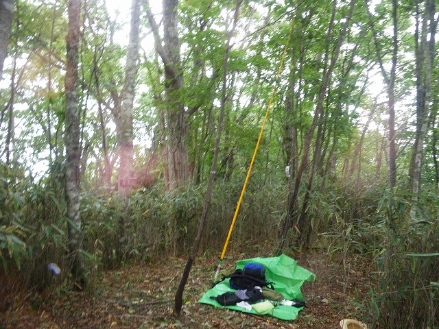 防火帯がチョン切れると尾根が細くなり、笹ヤブに踏跡がある。展望は悪いが、笹が刈り払ってある山頂