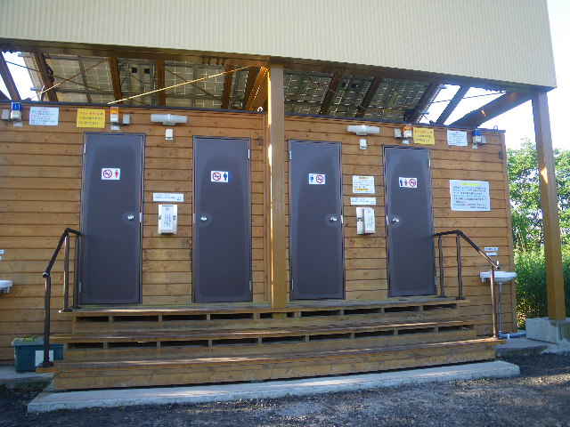 廃業した奥霧小屋脇のバイオトイレ。水を使用せず、バクテリア処理の最新型のようだ (240721)