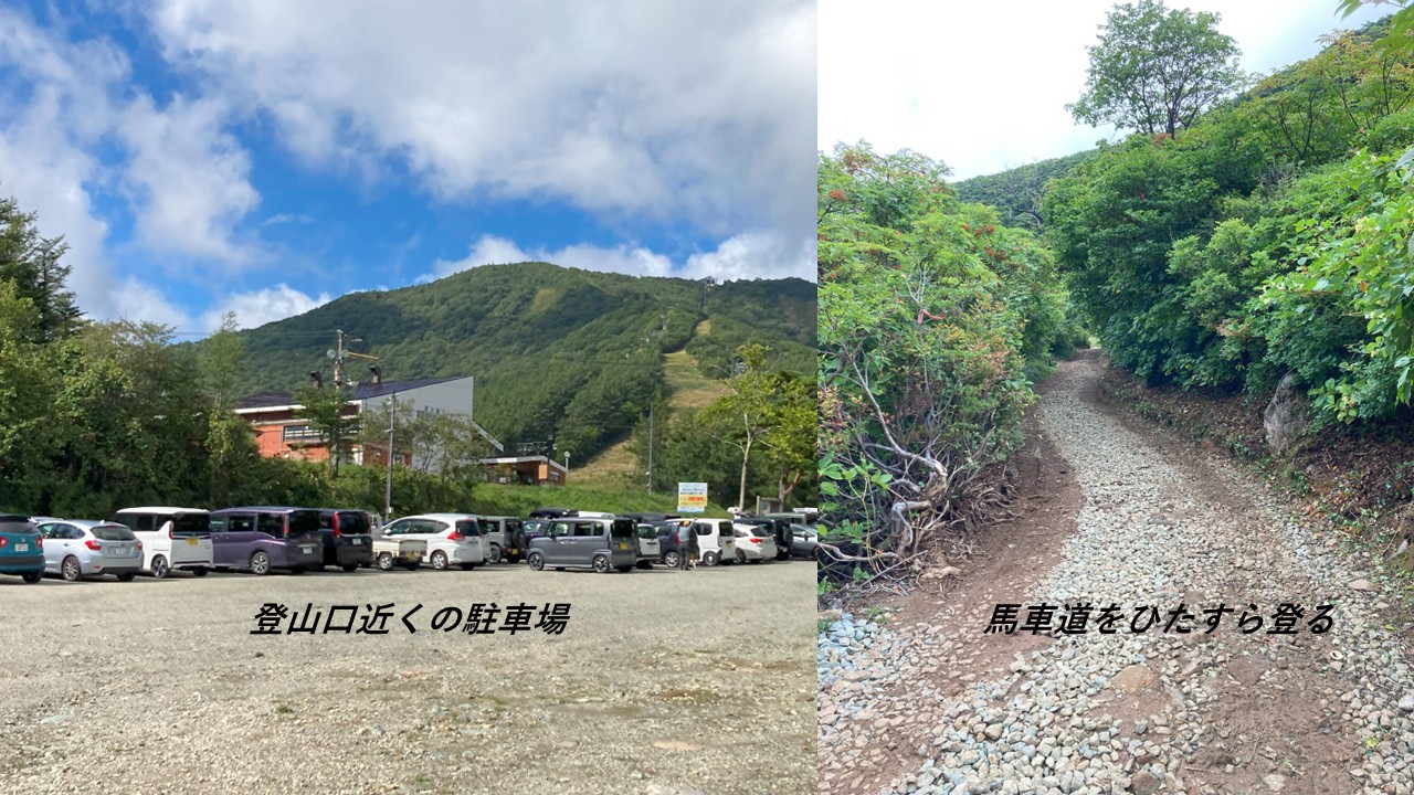安達太良高原スキー場の駐車場を9:15に登頂開始。 ロープウェイは使わずに、馬車道から登りはじめ、くろがね小屋、蜂ノ辻、矢筈森、安達太良山、薬師岳経由で、反時計回りに一周。 約 12kmの山行。