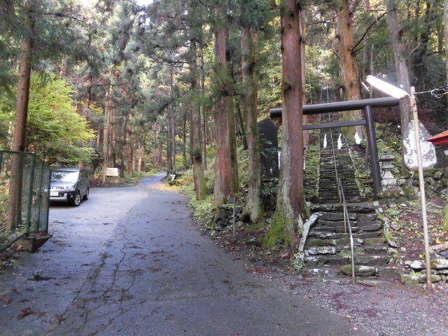 生藤山の西側のふもと、軍刀利神社の二の鳥居脇に駐車して出発