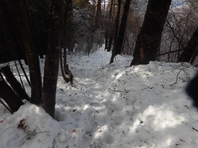 雪の坂道を富士山大砂走りのようにズリズリ下る