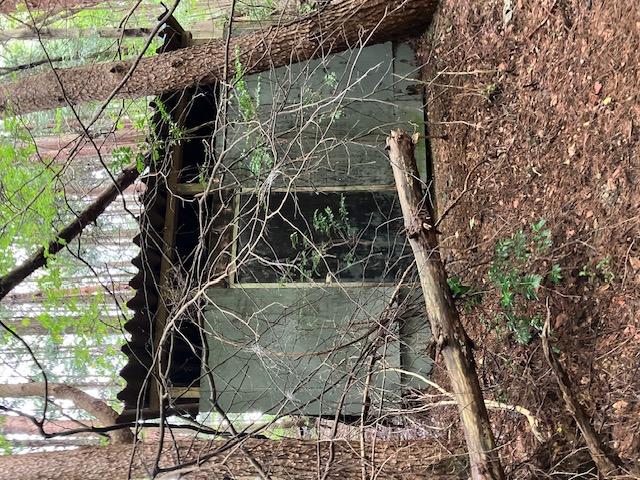 峠の北側に廃林道入口があり20分ぐらい歩くと廃屋がある