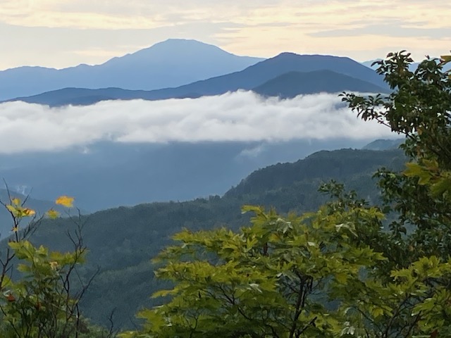 一部だけ展望が開け恵那山と笠置山が重なるように見える