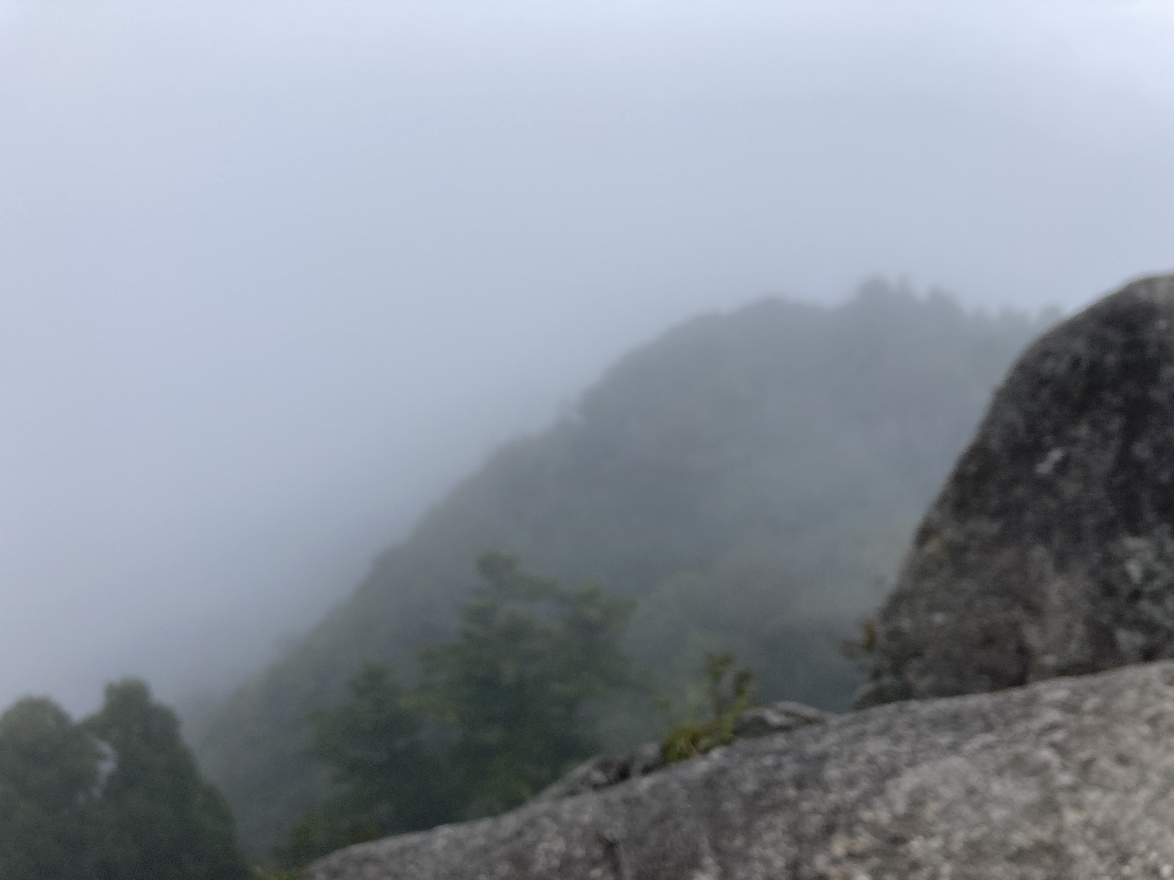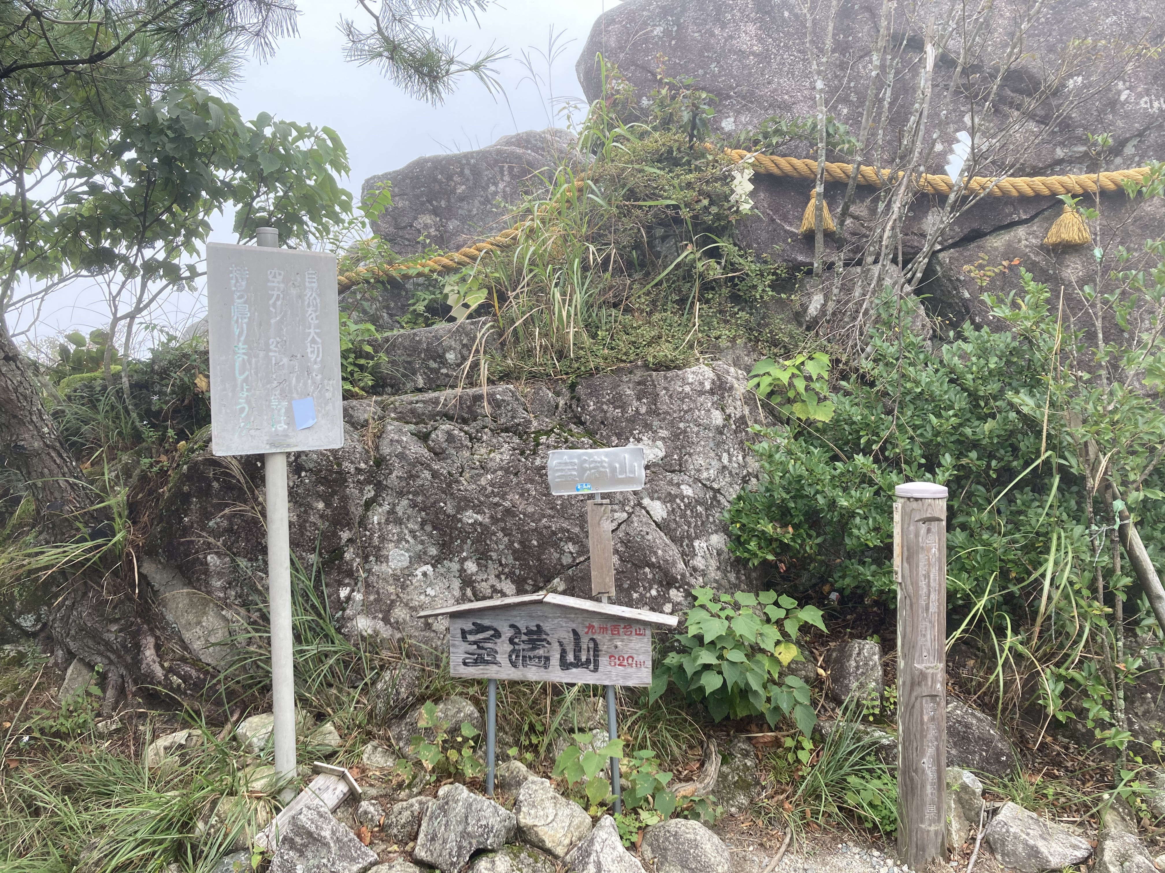 九州百名山 宝満山山頂。小雨にもかかわらず結構登山客多い