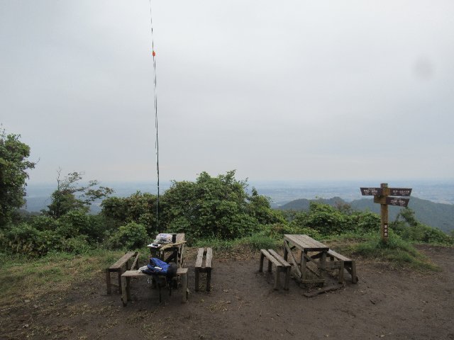 雨が降り止まないので撥水加工のパーカーを着て縦走を続行、景信山までやって来た。いったん上がったので6mを聞いてから433で運用開始したものの再びパラついてくる。下山は小仏/高尾山/大垂水峠の3択であるが、雨を理由に小仏へ降りることにした。40分でバス停に降り立つ。