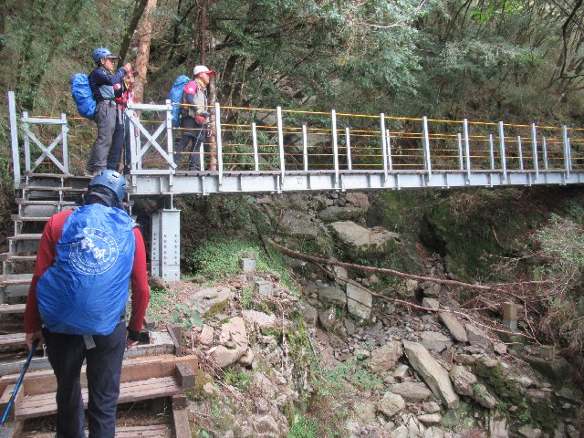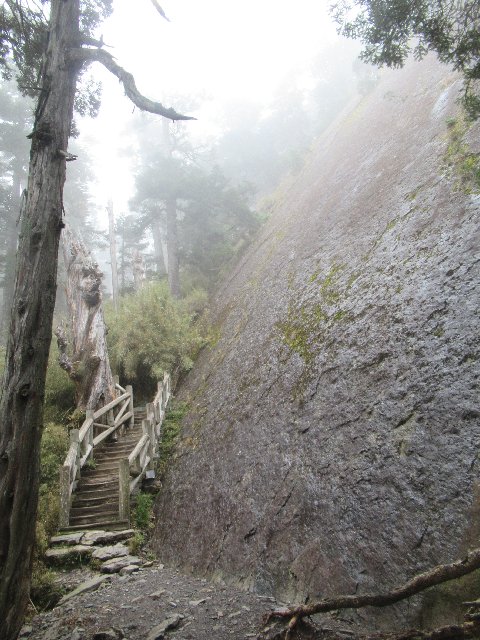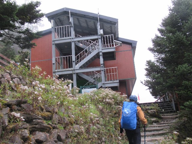 塔塔加登山口から排雲山荘までは8.5km、0.5km毎に表示がある。稜線南面につけられたトラバース道は一部を除いて広くなだらかで歩きやすい。途中2箇所に東屋トイレがあり、休むのには都合良い。やはりツアー参加者の足並みは揃わず、7時間かかって山荘に着いた。入山が規制されているため、ベストシーズンの週末にもかかわらず山荘内は余裕が感じられる。