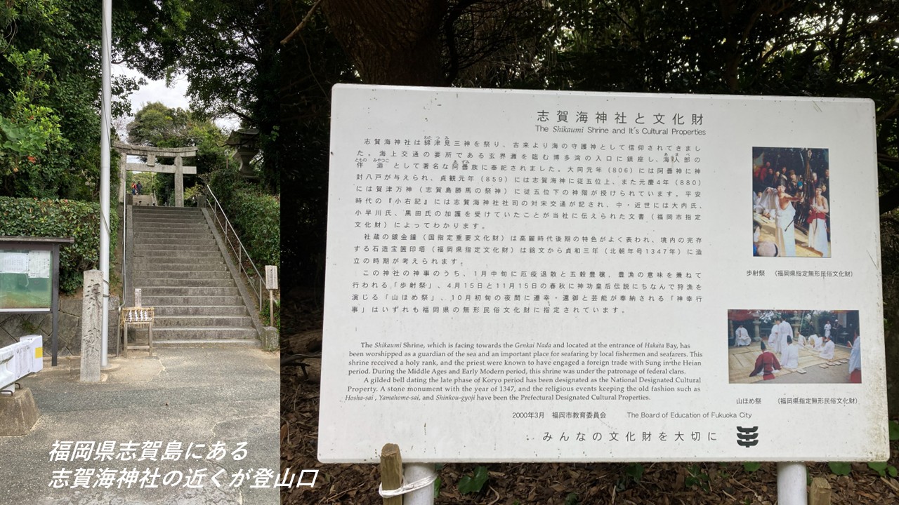 天神三丁目から西鉄バスに乗車して志賀島下車 志賀海神社まで歩くと登山口あり
