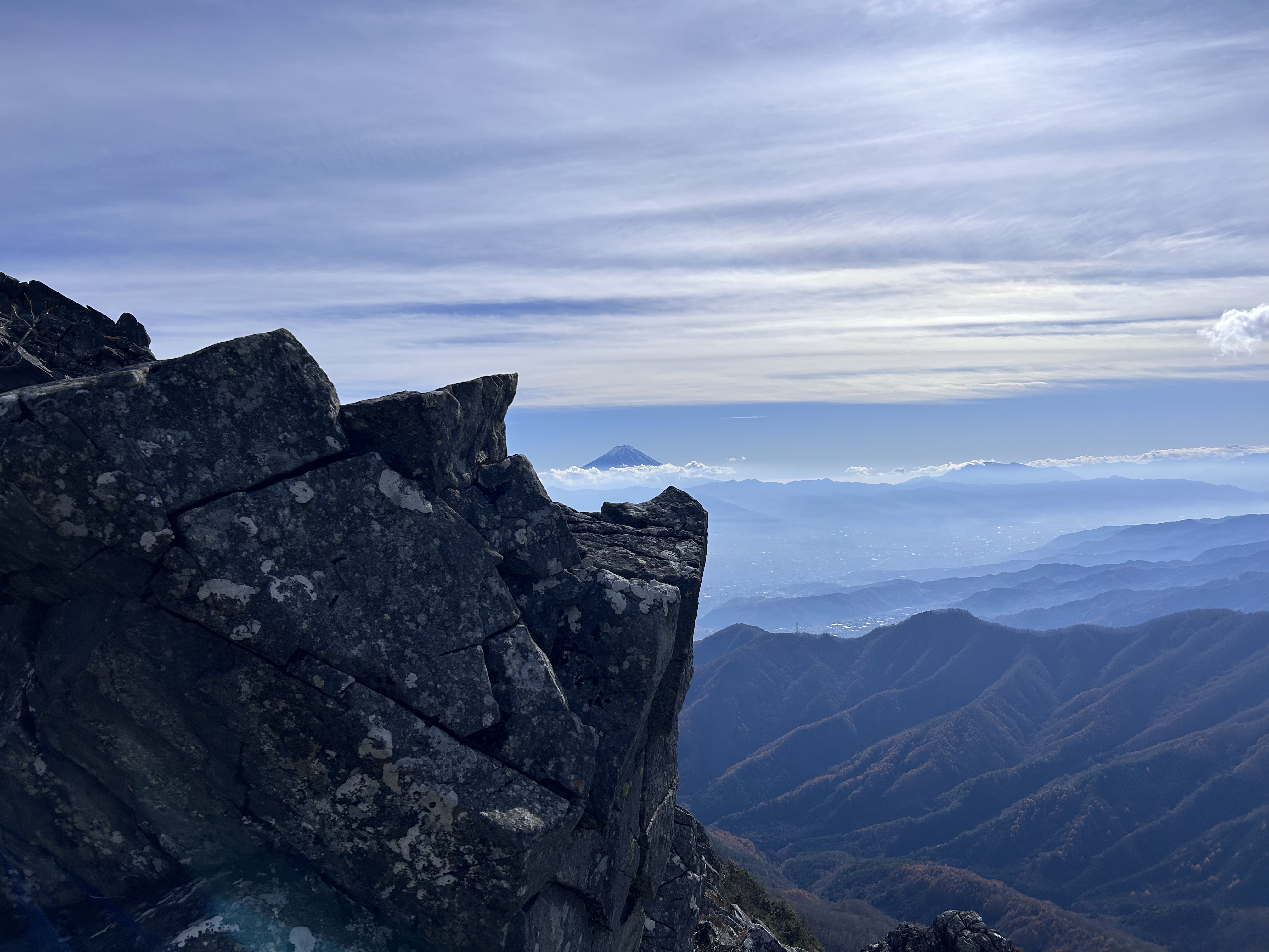 乾徳山の岩稜地帯からスリルと富士山絶景♪