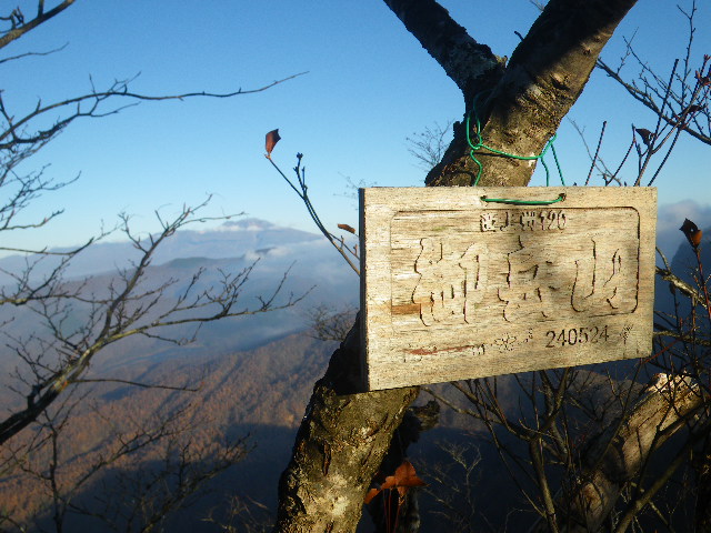 荒船不動P → 御岳手前のコル → 御岳 → 兜岩山(往復) → 星尾峠 → 荒船山(京塚山)(往復) → 星尾峠 → 荒船不動P 荒船不動Pは、路肩を含めて15台位駐車できる。Pから御岳手前のコルまで、しっかりした登山道があるのに、なぜ道標が無いのか理解に苦しむ。途中には、「登山道」の道標もあるのに。 山頂は、尾根登山道から50m位西の長野県側にある。