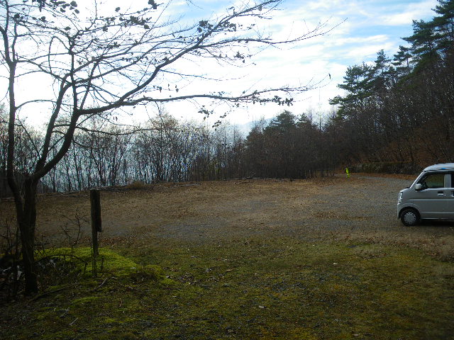 茂垣(モガキ)峠の広いP。東の甘楽町側の林道は、直前まで舗装路
