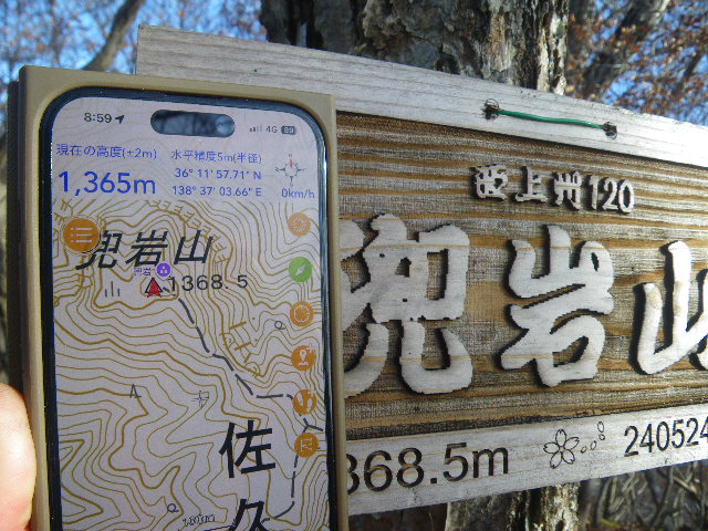 荒船不動P → 御岳手前のコル → 御岳 → 兜岩山(往復) → 星尾峠 → 荒船山(京塚山)(往復) → 星尾峠 → 荒船不動P ローソク岩の基部は、登山道の幅が15cm位しか無く、おまけに落ち葉が積り、一部凍結していたので、極度の緊張を強いられた。なぜここに、鎖を設置しないのだろうか。 近辺のコースの道標は、新しい金属製になっていたが、兜岩山の分岐に、道標が無いのも不思議だ。荒船不動の分岐も道標が無く、設置者の良心を疑う。