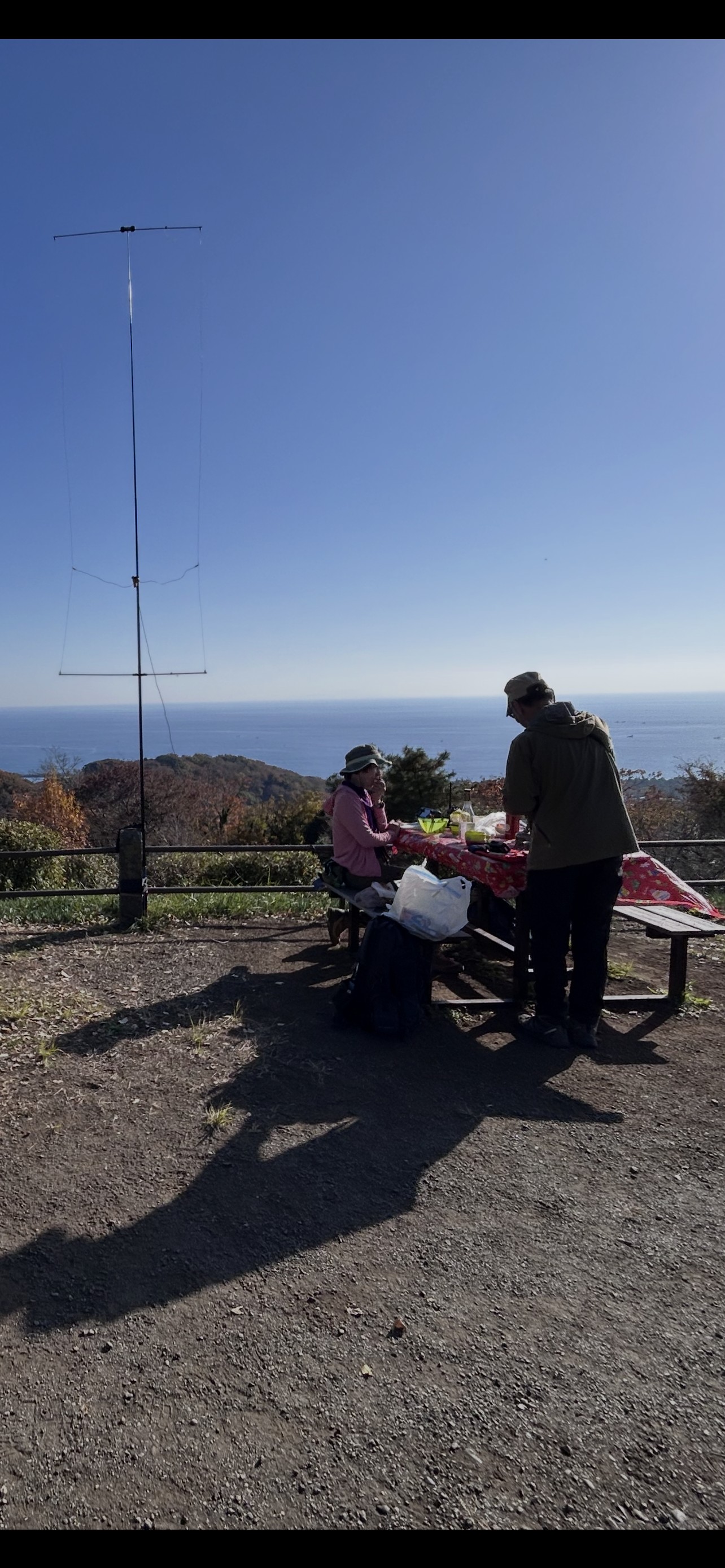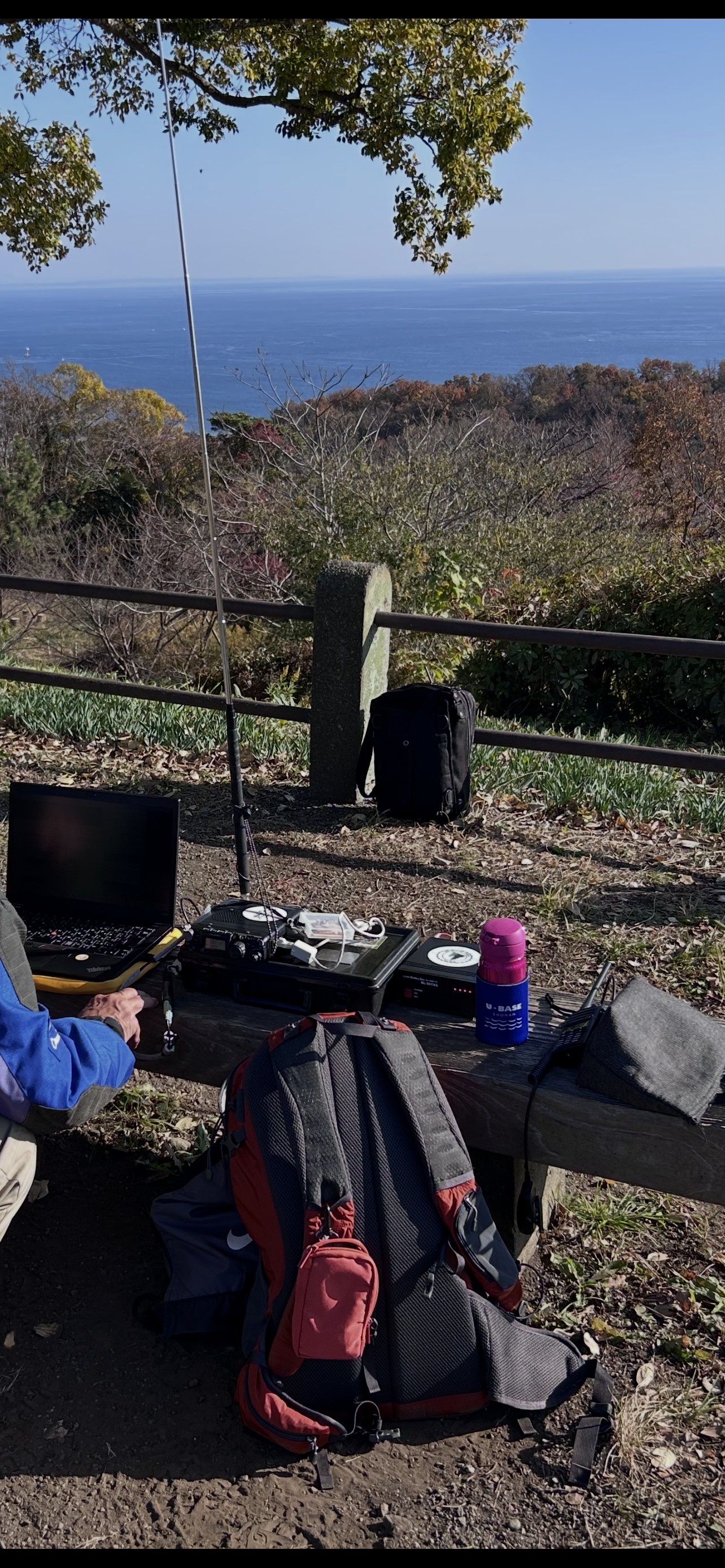 山の会メンバーからのリクエストで、山頂から7MHz〜〜28MHz FT8運用。 CWにもトライしたが信号が届いていないようで自局に重なって他局のCQ。 59入感だったが呼んでも応答なし。無線をはじめたばかりのメンバと交信練習。 たまたま湘南平で移動運用していた2エリア局とアイボールもできた。