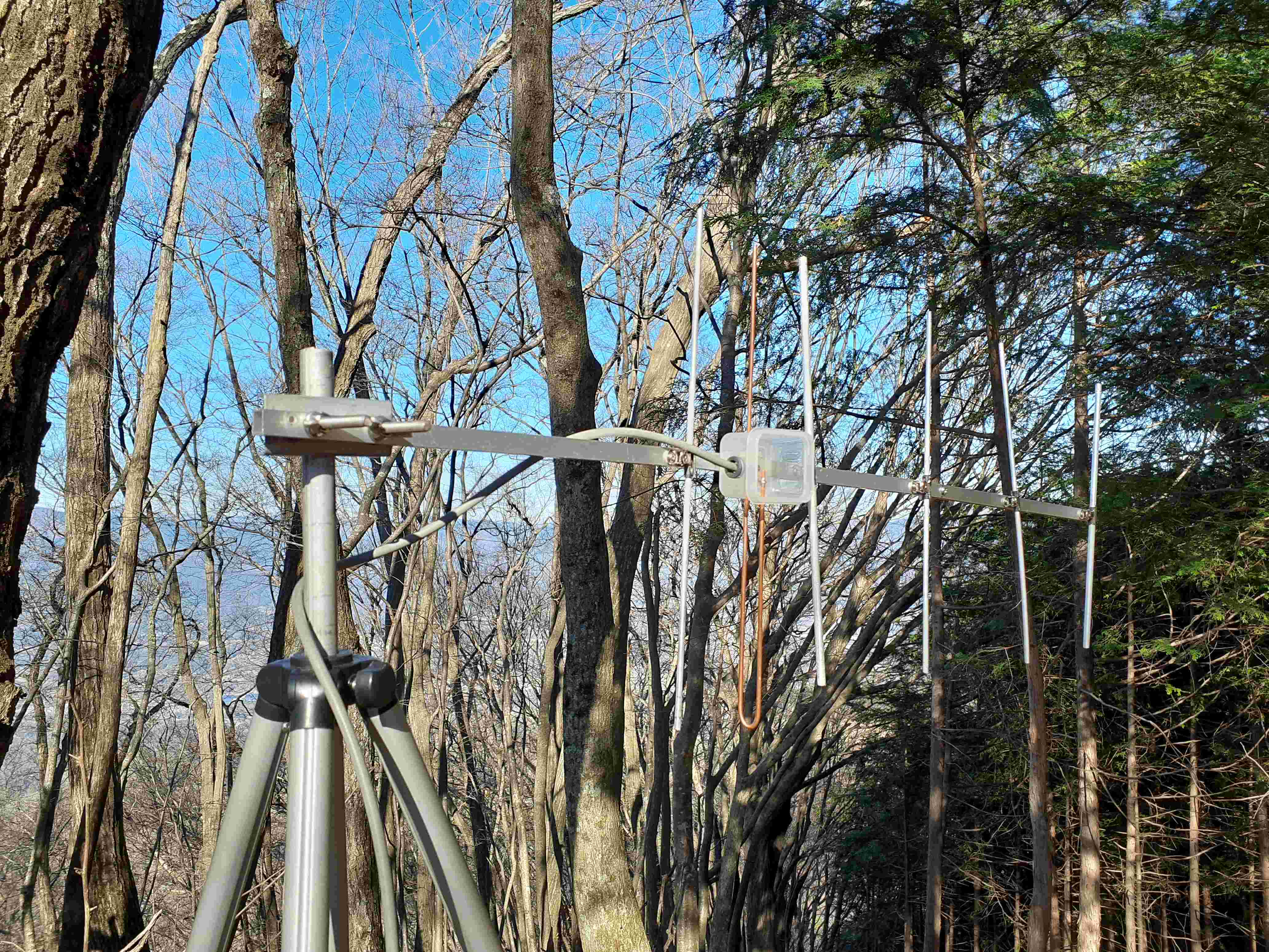自作八木アンテナを持っていきました。ブームは三分割できザックに収まります。