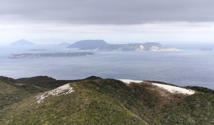 手前から式根島、新島、利島、遠くに伊豆大島