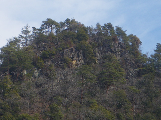 西の岩殿山側の車道から望む、岩峰の大洞岩
