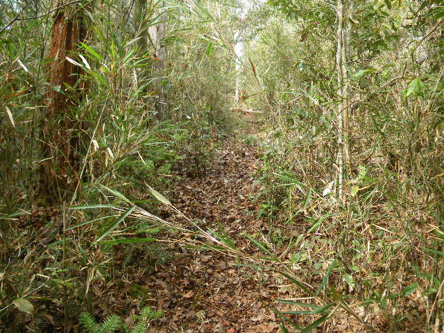 篠竹の中の刈払われた道。登山者は増えているようだ